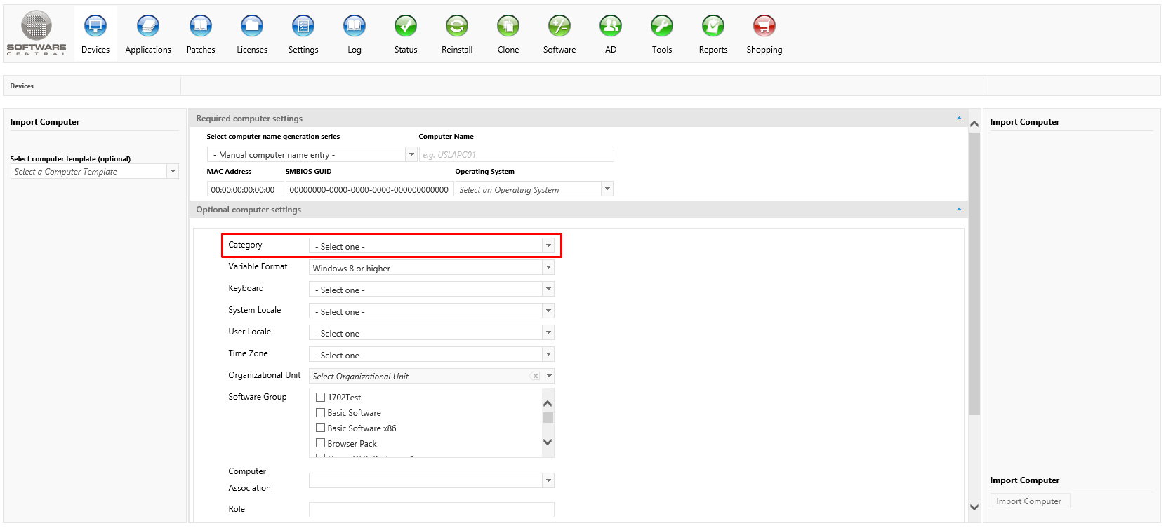Now your setup is ready. Go to Import Computer. You should now see the new "Category" variable:
