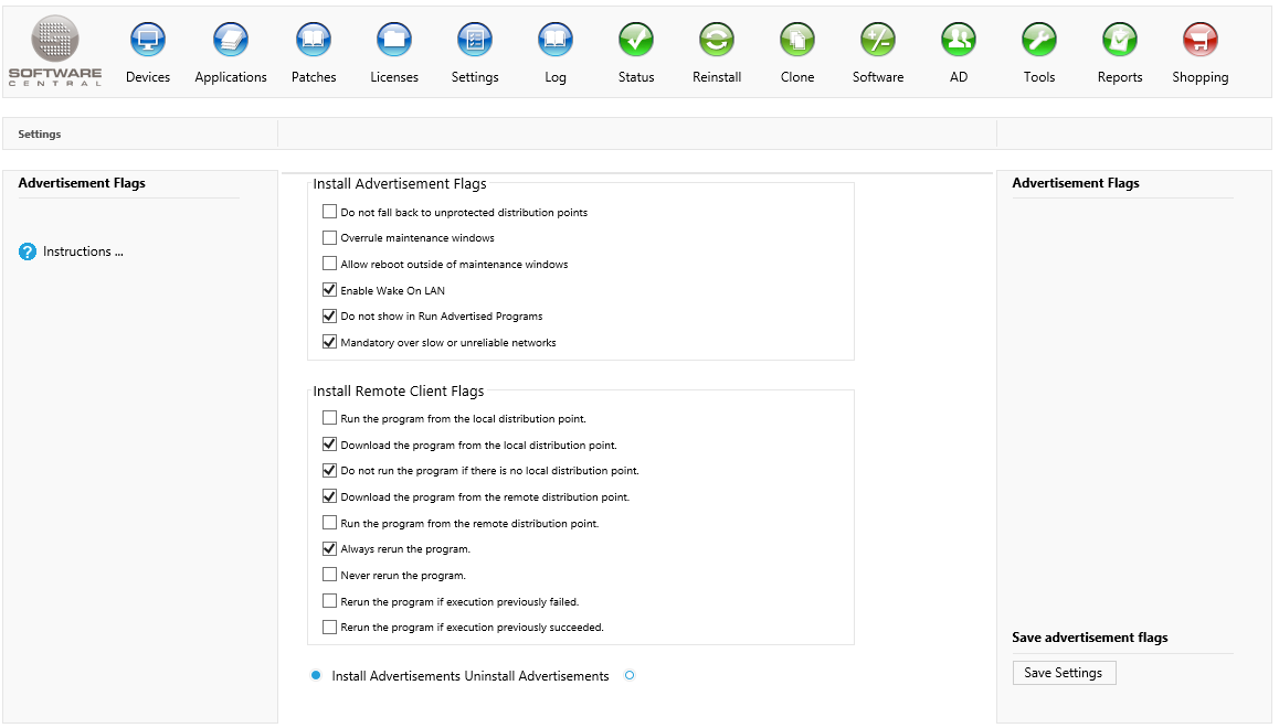 Set the desired flags for install and uninstall advertisements and click on the "Save Settings" button to save the settings.