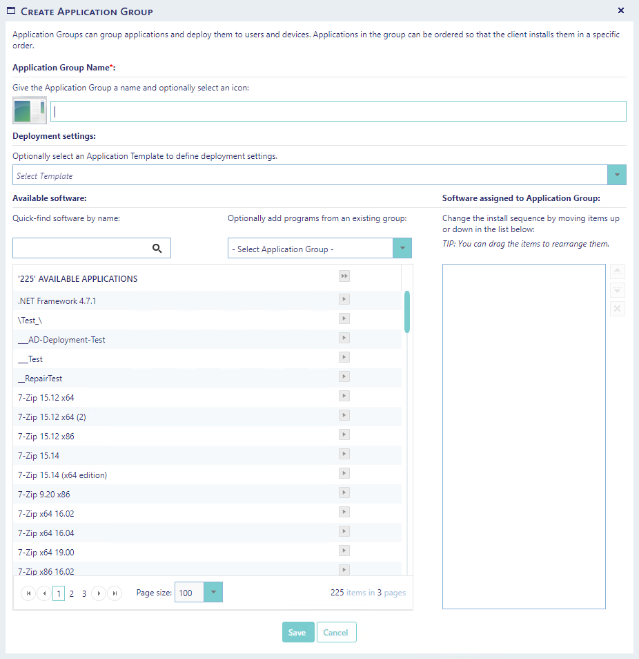 Select the Application Group to edit and make the desired changes in the window that opens. If the Application Group does not have any deployments, an option will appear to create the default collections and deployments in the SCCM.