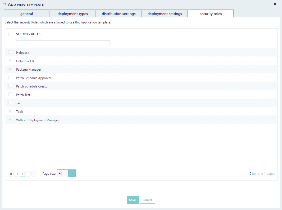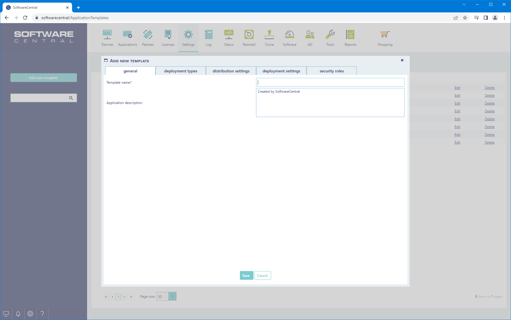 When you have finished adjusting the settings to fit your needs, then click the save button to save your work. The newly created application template will now appear in the list of templates. Or click cancel to return to the list view without committing the inputted data.