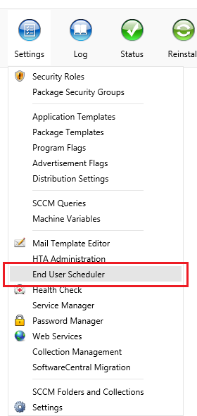 Everything is configured from the configuration page for the End User Scheduler, which is located under the Settings menu: