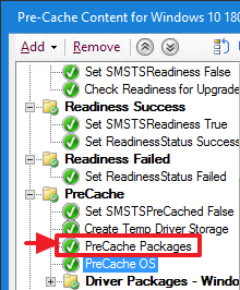 Once the new task sequences has been created, you can modify the driver packages in the pre-cache task sequence if needed.