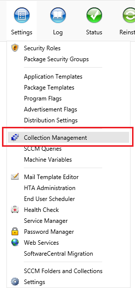 From the Collection Management interface, you can manage SCCM collections and their members. The interface is found under the Settings menu: