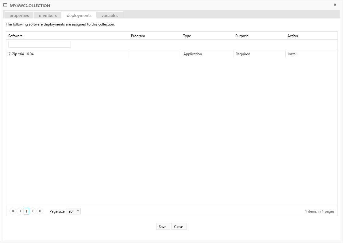 From the deployments tab, you can see what are currently deployed to the selected collection: