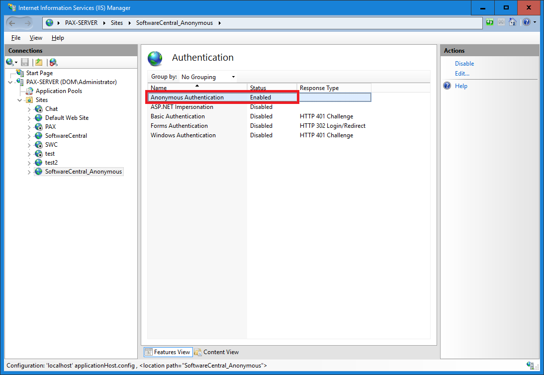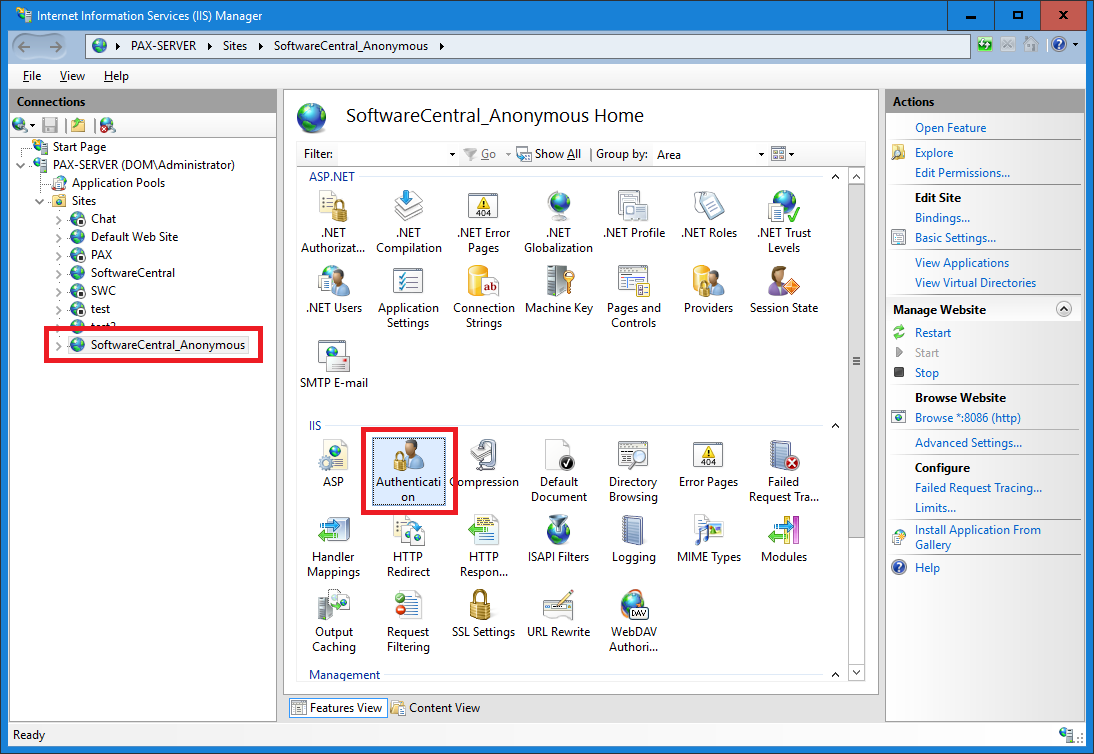 Note that the main interface of SoftwareCentral cannot be access anonymously. Only the HTA and Web Services are available anonymously.