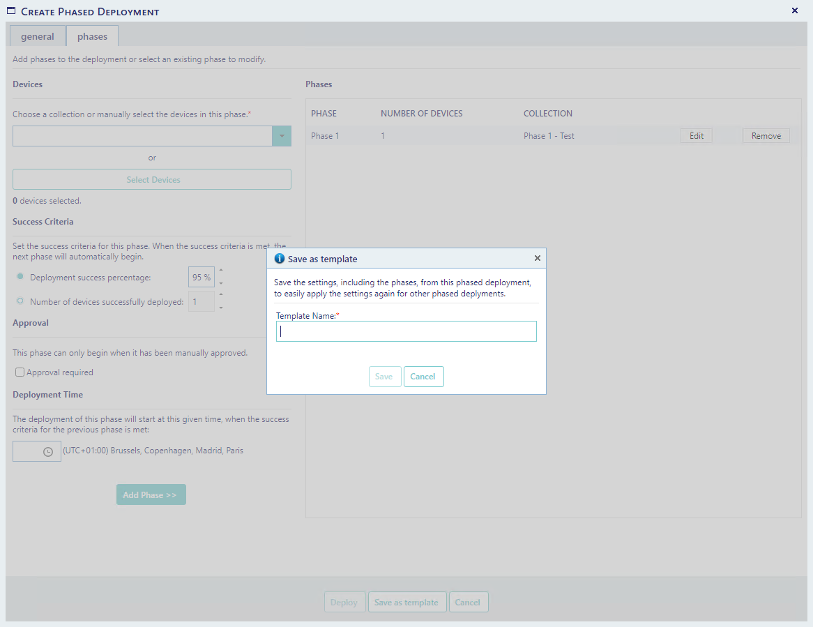 You can save the settings of your current phased deployment as a template, to easily make a similar deployment later.