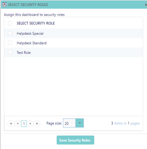 Set the check mark in the desired roles and press “Save Security Roles”.