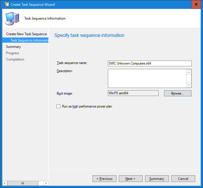 3) Name the task sequence “SWC Unknown Computers” as seen on figure 12 below.