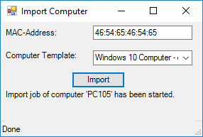 This example demonstrates how to import a computer, using only the Mac-address, from a tool programmed in PowerShell.