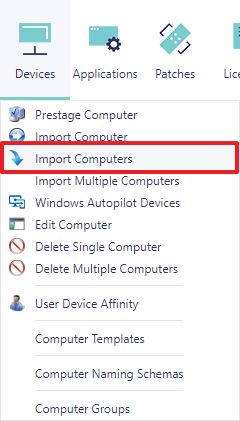 To import multiple computers in a single operation, go to the “Import Computers” interface found under the “Devices” menu button: