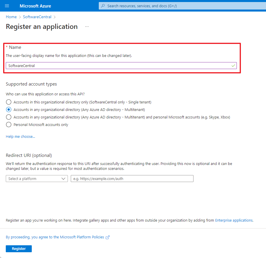 Give your Application Registration a name.