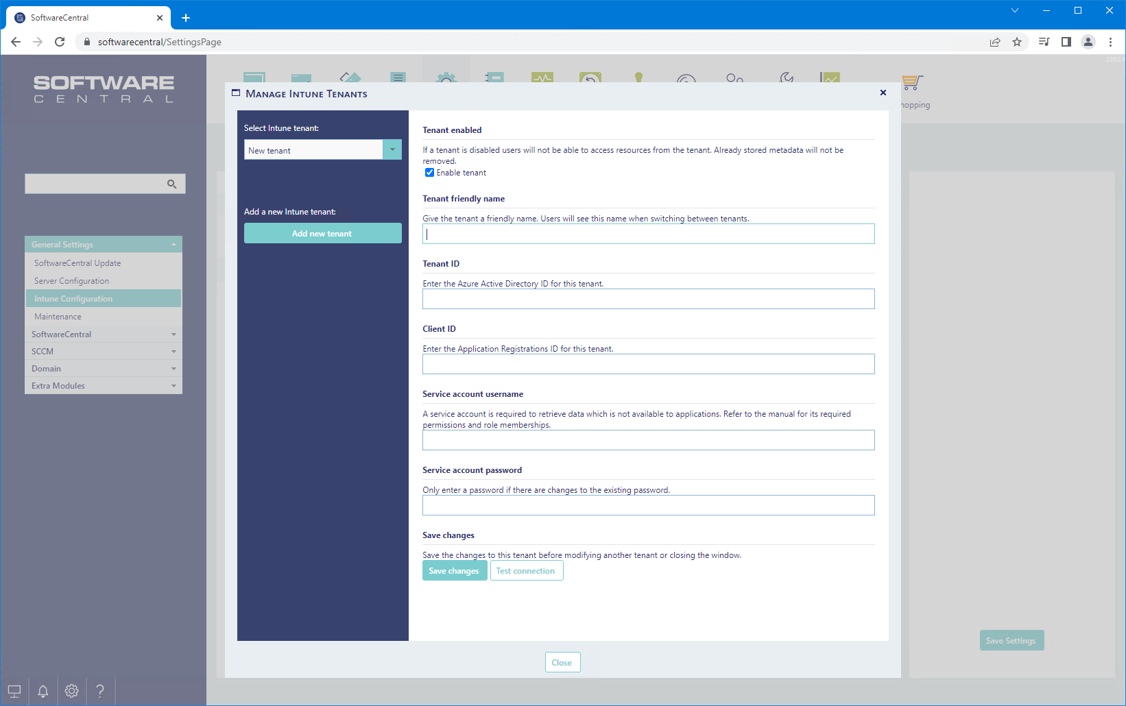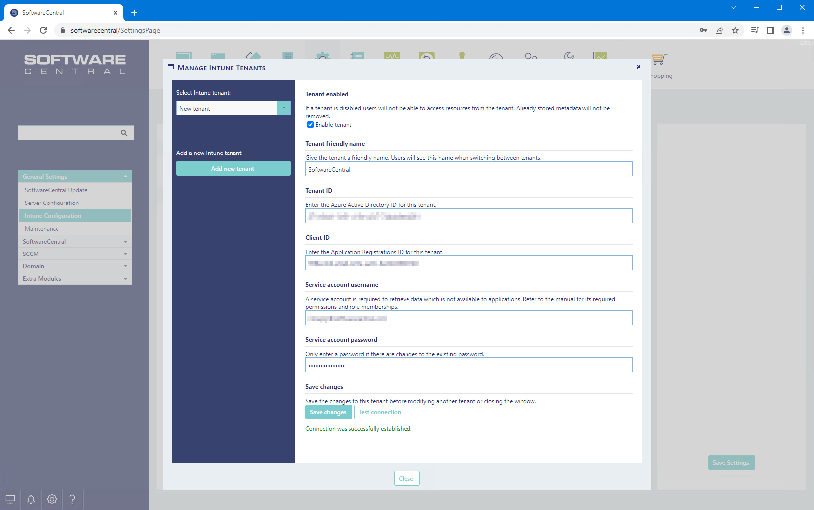 SoftwareCentral can connect to multiple Intune tenants.