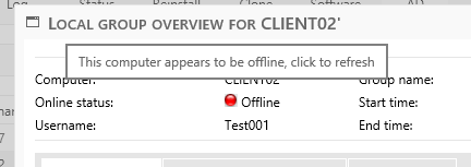 If the computer is offline, a Wake on Lan request can be sent to the machine by clicking the red dot, this will send the request, and after 30 seconds try to ping the computer again.