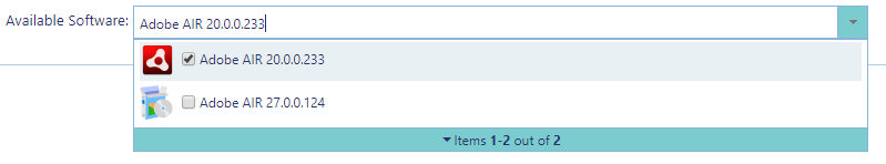 When opening the “Available Software” drop-down you can browse through the available software using the mouse or the arrow keys on the keyboard.