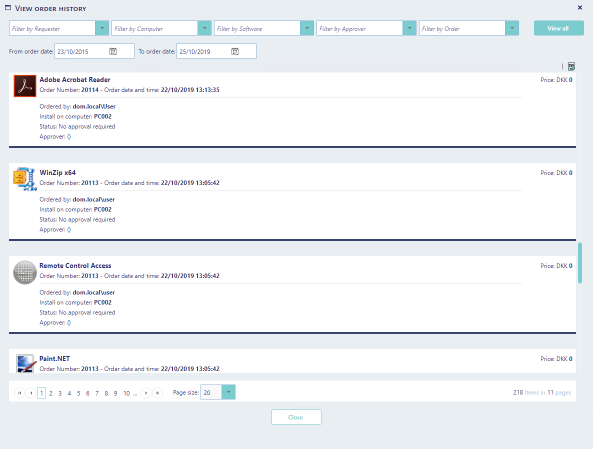 -          Status: Status on the approval state. Was the order approved, rejected and who did it.