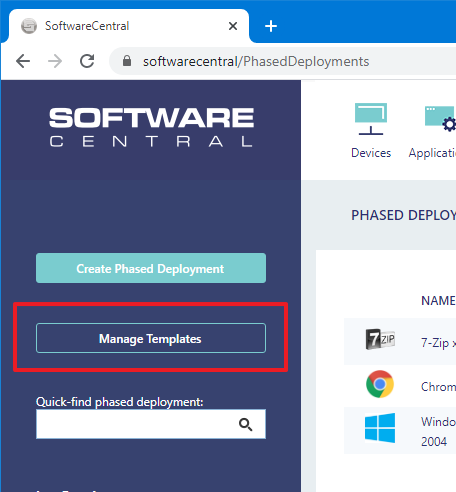 To manage templates, click on the "Manage Templates" button in the left menu on the Phased Deployments page: