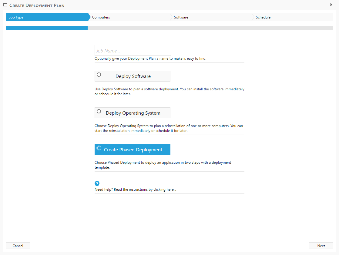To create phased deployment, select the “Create Phased Deployment” button, and press next. This will change to name of the next two steps.