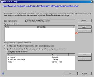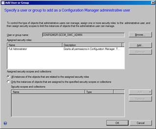 Click on the “Browse” button and add the SCCM_SWC_ADMIN user created in section 1