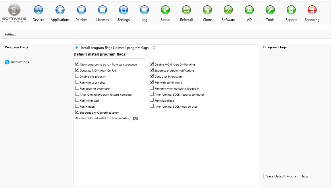Set the desired flags for install and uninstall programs and click on the "Save Default Program Flags" button to save the settings.