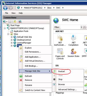 Before SoftwareCentral can be started, the website needs to be restarted.
