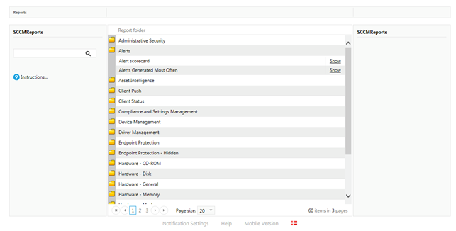 The screenshot below shows the SCCM report main interface, and it is from this interface all the SCCM reports are found. Only reports delegated to the login security role will be showed