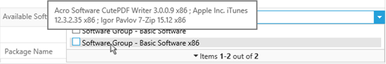 Manage Software allows users to deploy Software Groups. Software Groups are deployed just like any other package, by selecting them from the available software drop-down box. You can hover the mouse over a Software Group to see what it contains: