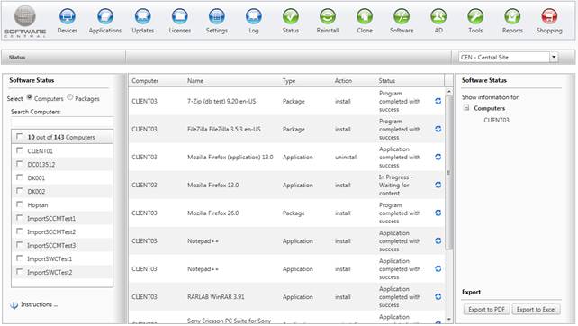 It is possible to select both computers and packages at the same time. So if you select 10 computers and 1 package, the deployment status on the 10 selected computers for the package will be displayed: