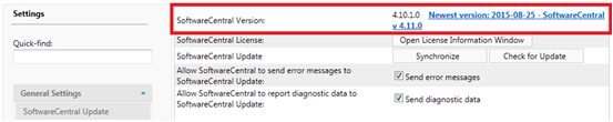 You can see if a new version of SoftwareCentral is available from the Settings menu in SoftwareCentral: