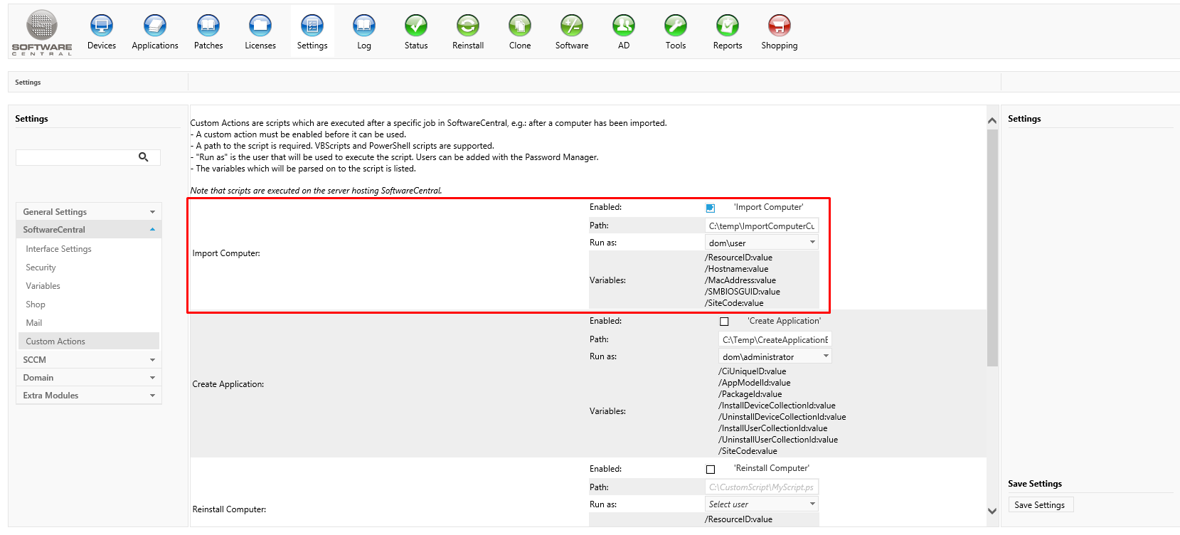 Now we must configure SoftwareCentral to call the script after computer imports.