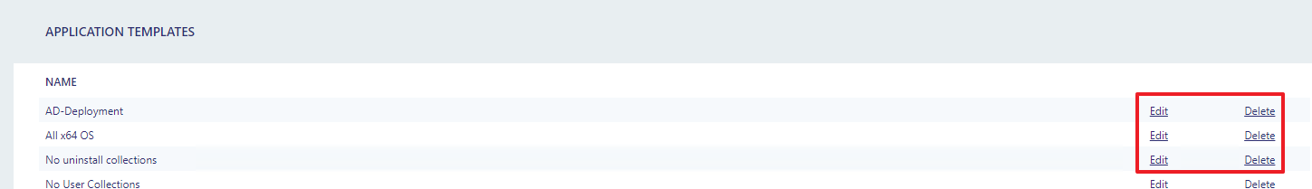 In this view you will see all existing application templates. The view also allows the opening of editing and creation of application templates, as well as allowing for deletion of templates.