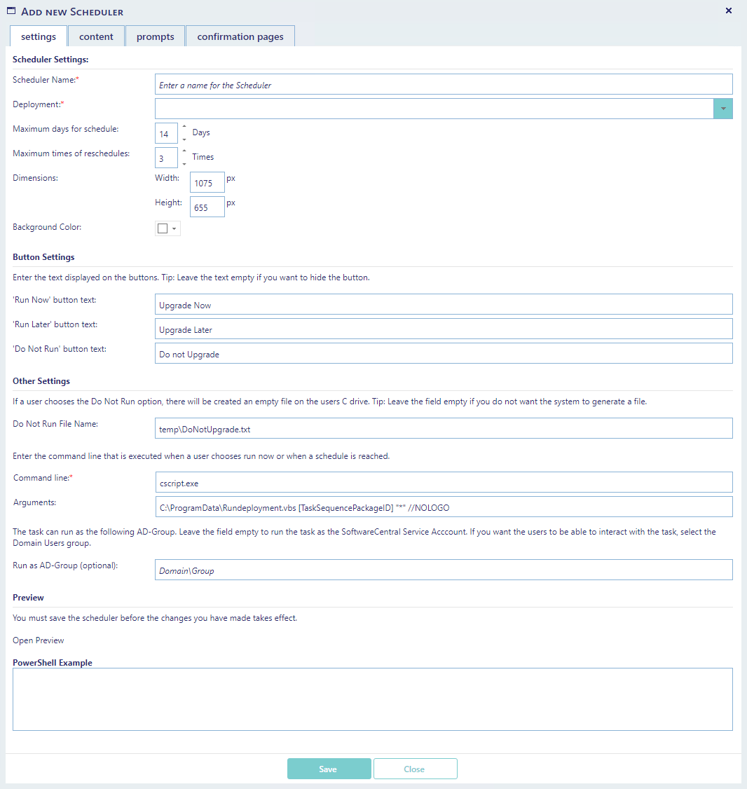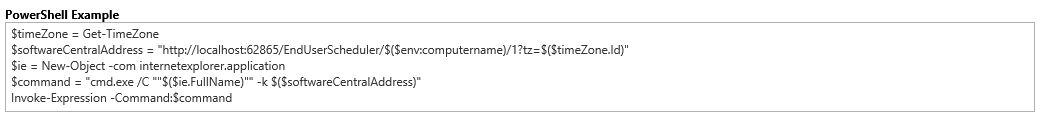 End users may run this tool from a PowerShell script. An example of this PowerShell script with the required values will appear in the "PowerShell Example" textbox, once the scheduler is saved: