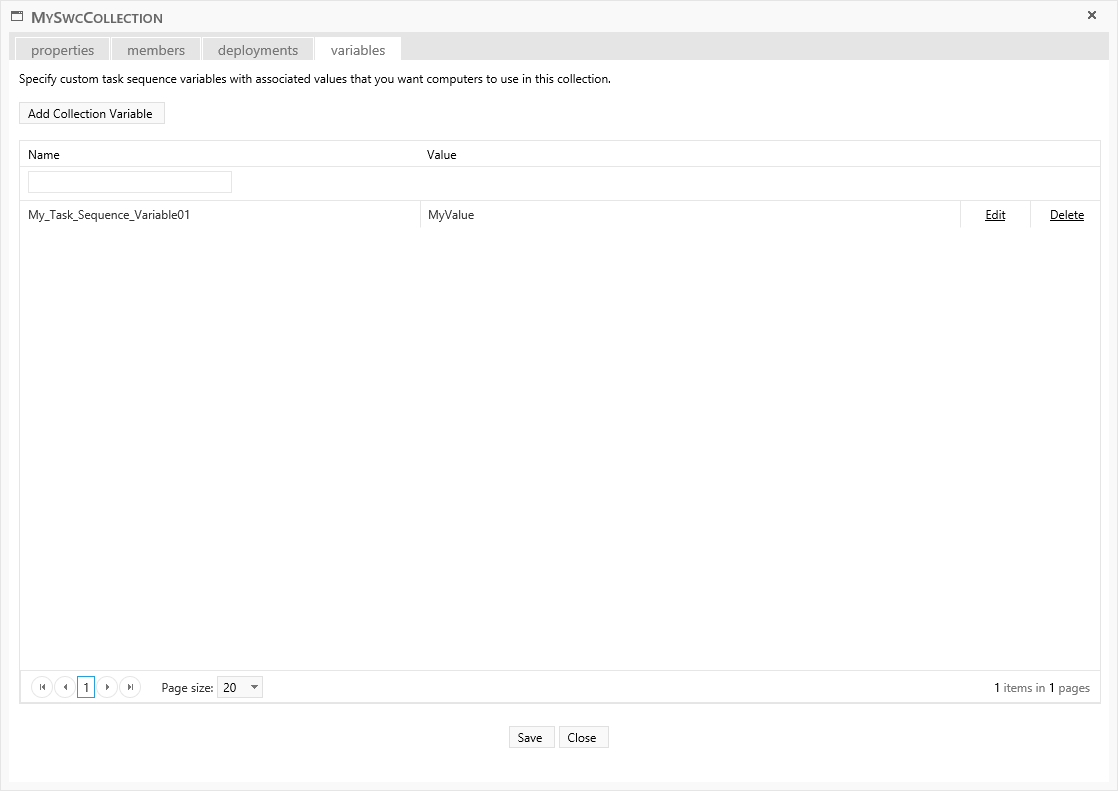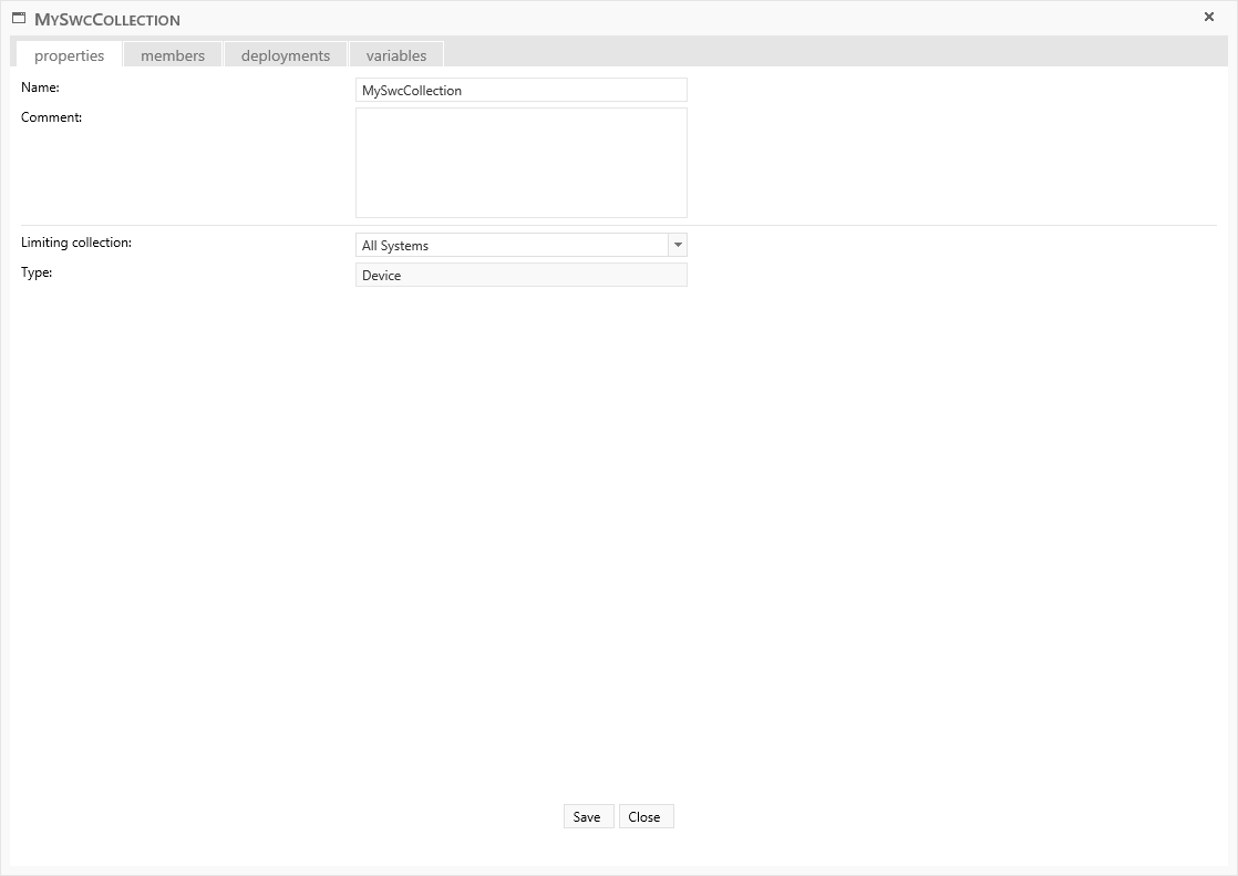 On the right side, you will now see the collections in the folder. Click on the Edit button or right-click on the collection and click Edit to edit the properties, members and collection variables for the collection: