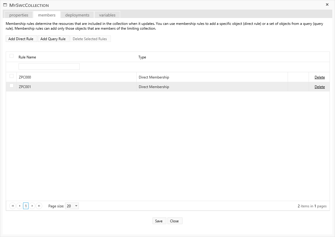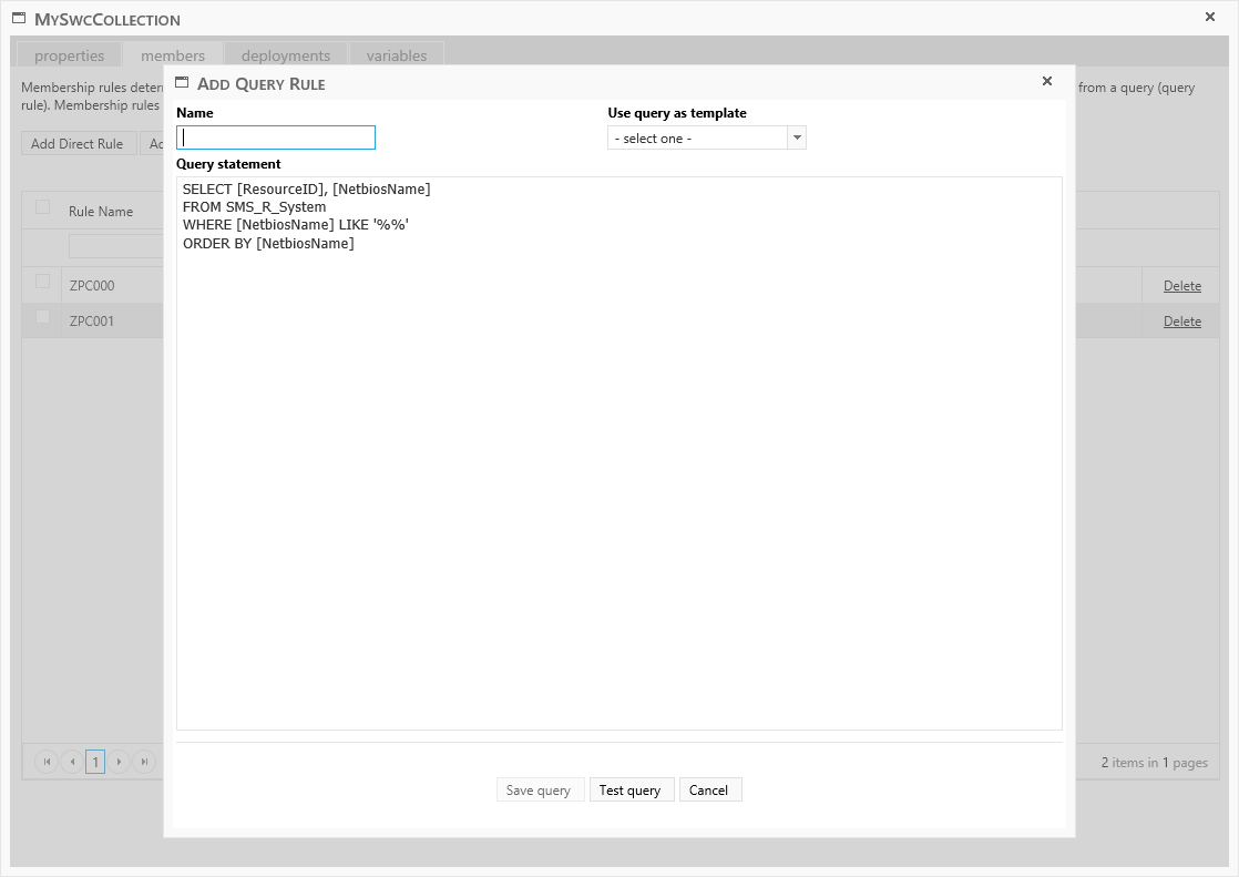 To add a direct membership rule, click on the "Add Direct Rule" button. A new window will open where you can select the resources you want to add to the collection.