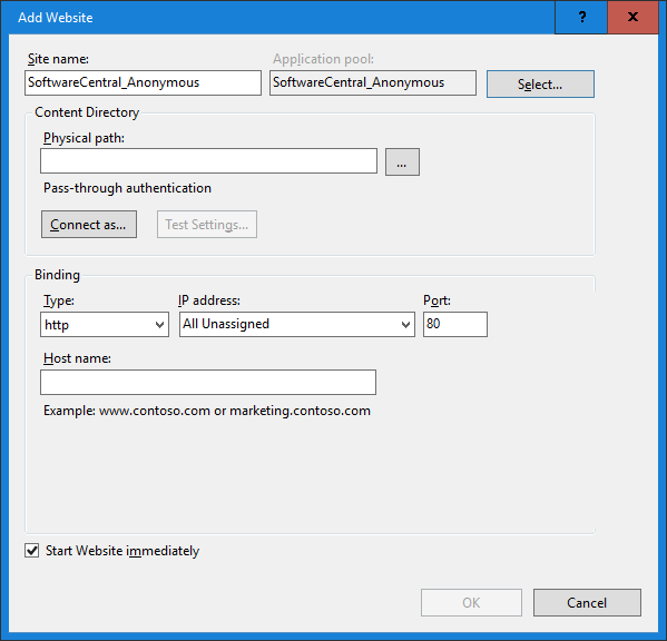 This guide describes how to configure an additional site with Anonymous or Basic Authentication.