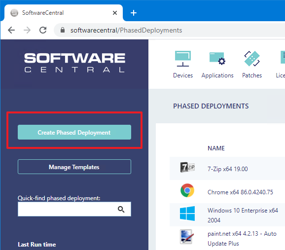 To create a Phased Deployment, click on the "Create Phased Deployment" button in the left menu.