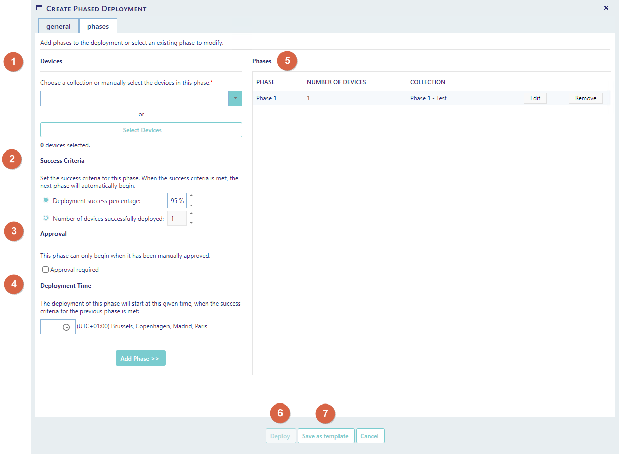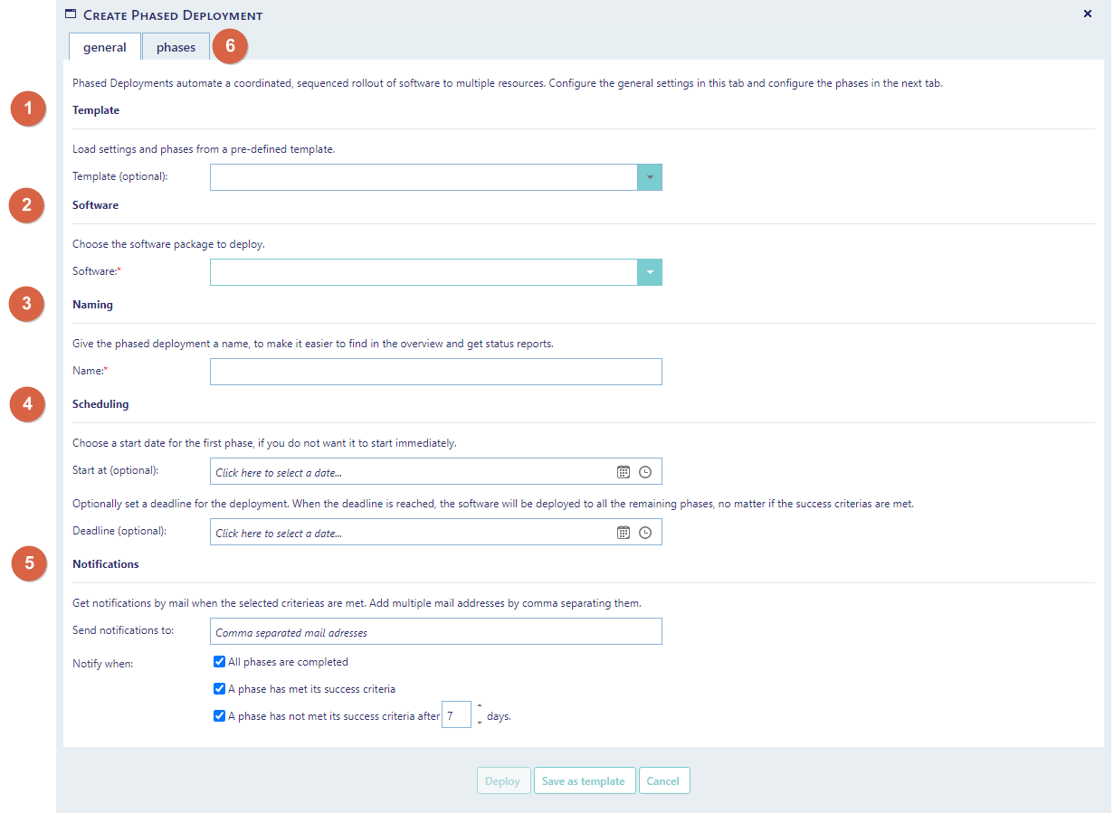 You can save the settings of your current phased deployment as a template, to easily make a similar deployment later.