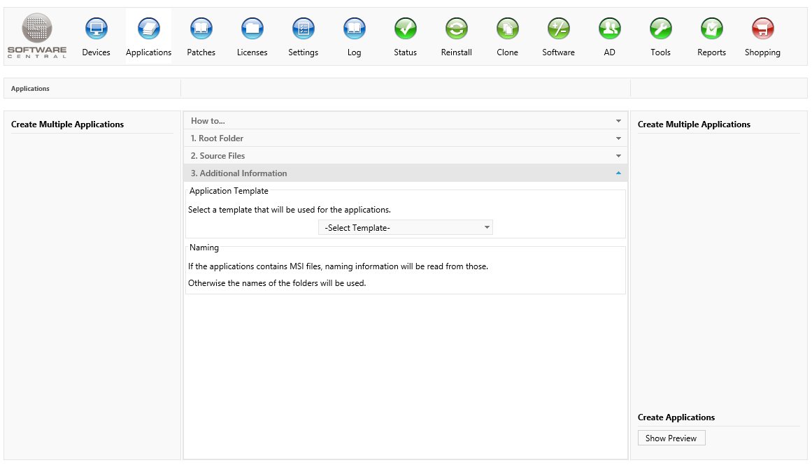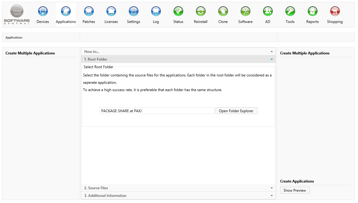 Go to “Create Multiple Applications” in SoftwareCentral and select the folder containing all your applications: