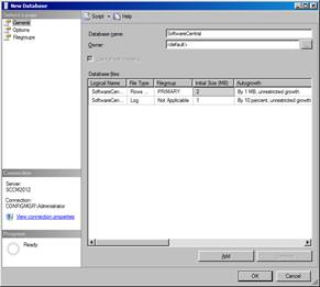 To create the SoftwareCentral SQL database, start the Microsoft SQL Server Management Studio.