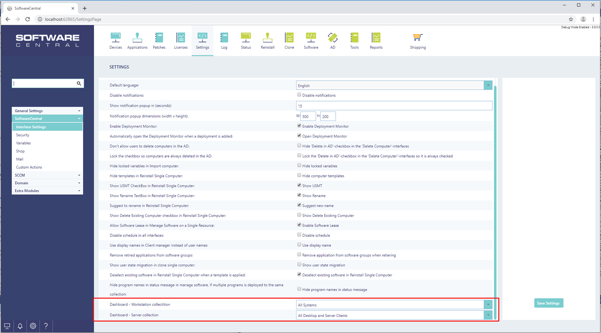 Before going to the interface, make sure that the following two setting is selected in the SoftwareCentral setting menu, these settings are used in multiple graphs. The settings are found under “Interface settings”: