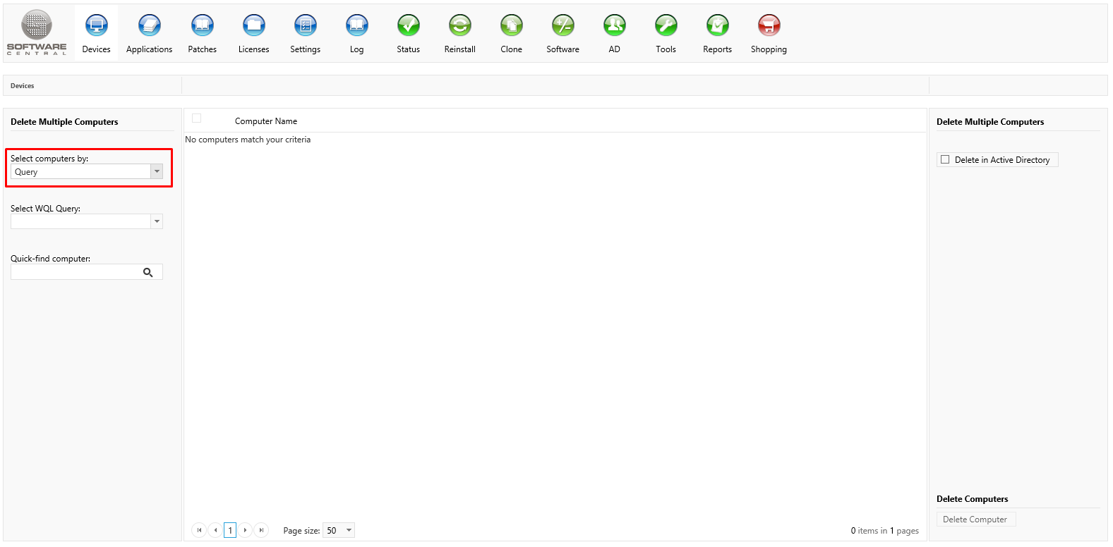 | Interfaces > Devices > Delete Multiple Computers |