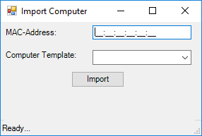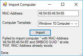 This example demonstrates how to import a computer, using only the Mac-address, from a tool programmed in PowerShell.