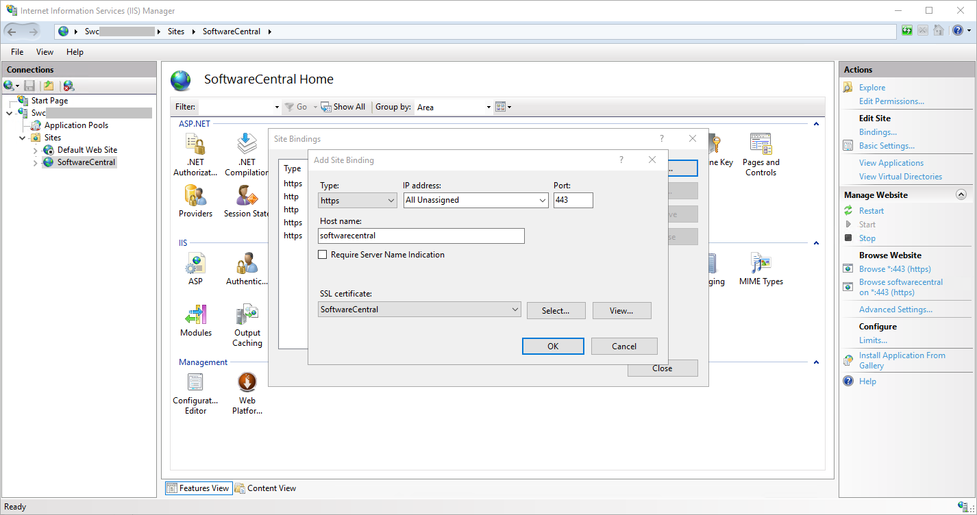 We also recommend that you set up SoftwareCentral with a SSL certificate.