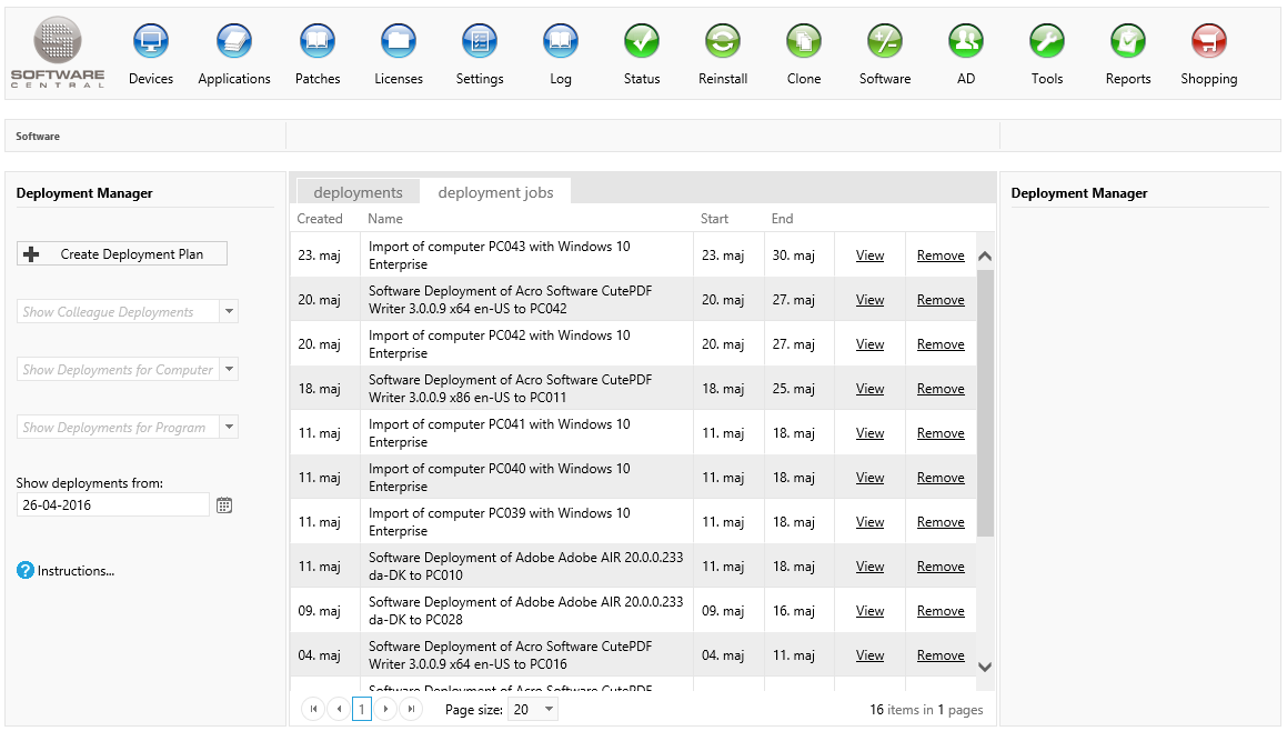 - Create Deployment Plan: It opens the window where you can install / uninstall software and reinstall computers.