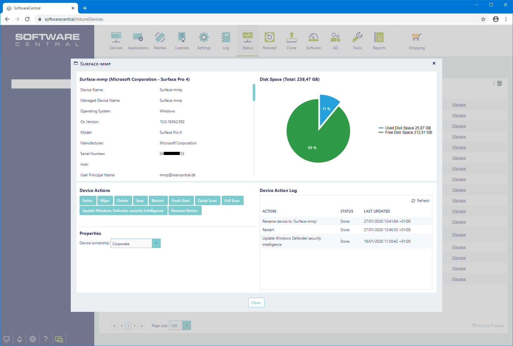 The device ownership type determines which data Intune collects about the device and which Device Actions there will be available.
