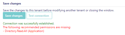 Any issues will be reported in the interface after you have tested the connection: