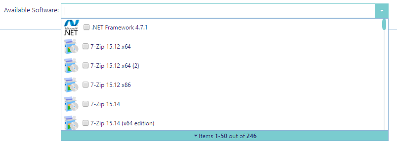 When opening the “Available Software” drop-down you can browse through the available software using the mouse or the arrow keys on the keyboard.