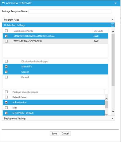 When you have finished adjusting the settings to fit your needs, then click the save button to save your work. The newly created package template will now appear in the list of templates. Or click cancel to return to the list view without committing the inputted data.