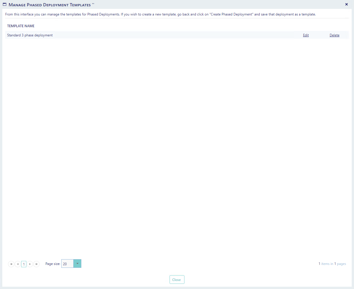 To manage templates, click on the "Manage Templates" button in the left menu on the Phased Deployments page:
