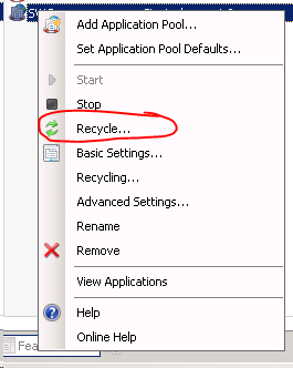 From the Internet Information Services (IIS) Manager, recycle the application pool: |