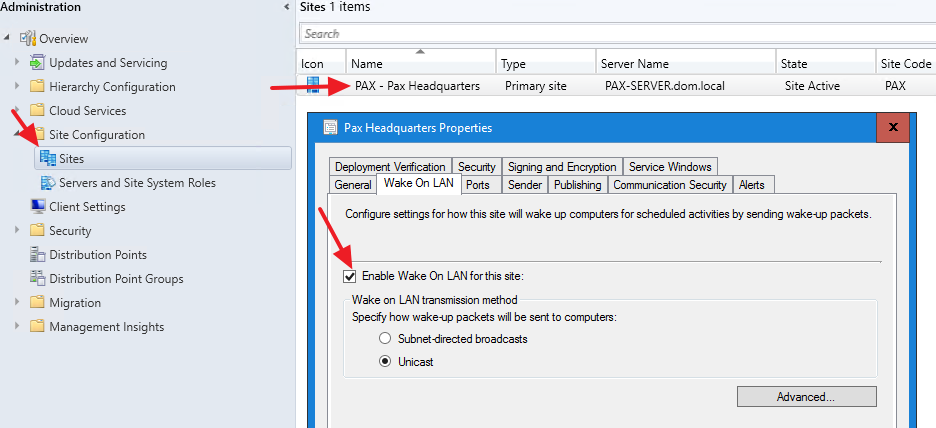 Send Wake on Lan package using the SCCM. This feature requires SCCM 1810 or above and must be enabled in the SCCM.